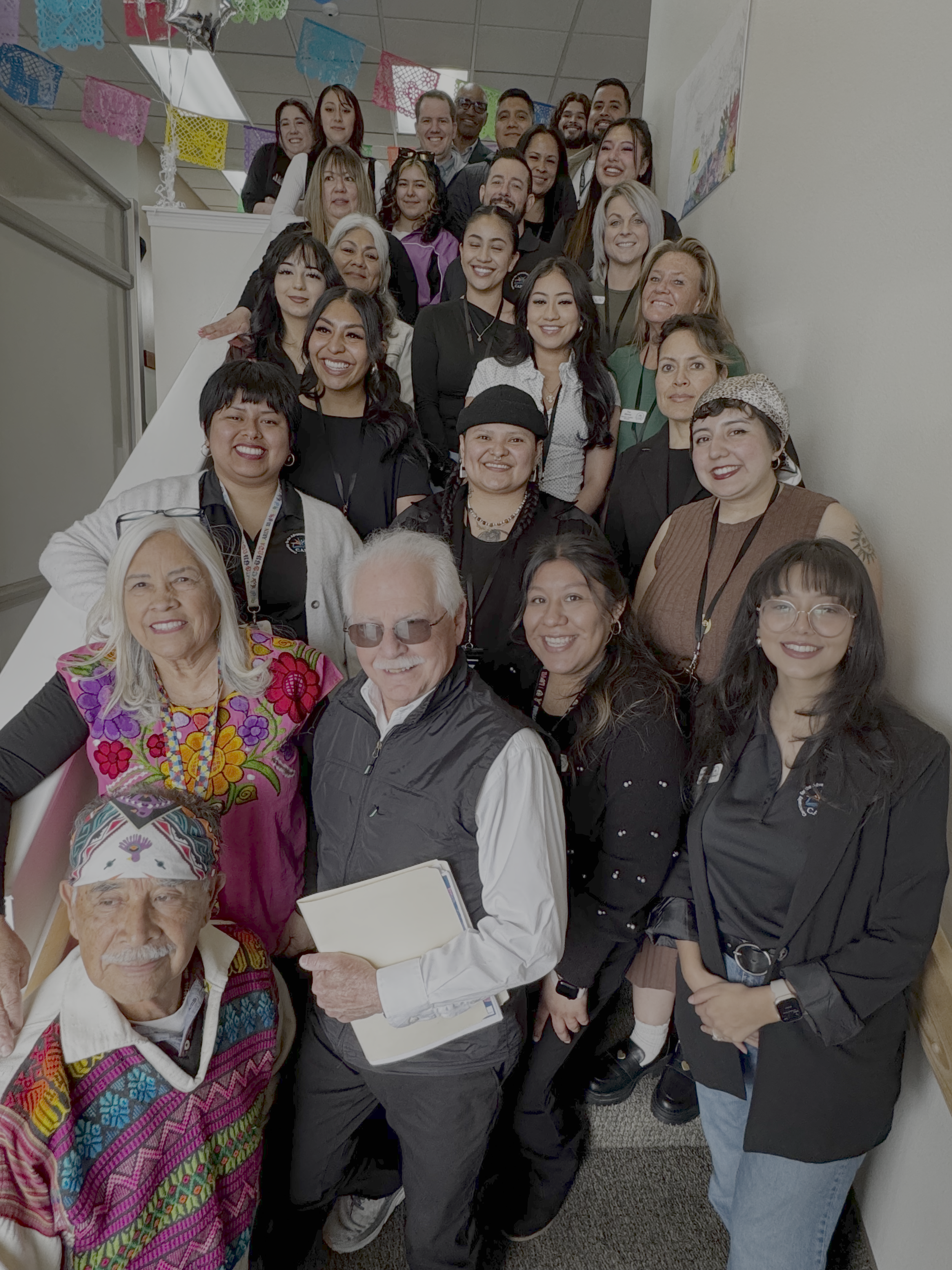 CAFÉ Board of Directors (left to right): Dulce Negrete [Chair], Alma Chacón [Co-founder], Lucy Garibay, Gene Sharratt, Nelson Delgado [Treasurer], Taylor Kenck [Co-Chair], Tonantzintla Chacón [Executive Director], Stephen Maher [Secretary], Representative Steeele, Dr. Jorge Chacón [Co-founder]